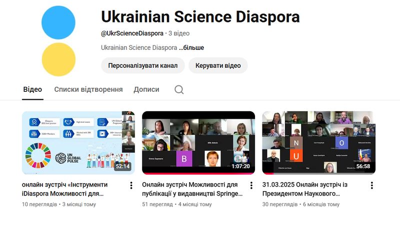 Ініціатива «Українська наукова діаспора» відкрила офіційний YouTube-канал, на якому публікуються відео про діяльність українських науковців за кордоном, записи подій, інтерв’ю, презентації та історії міжнародної співпраці.