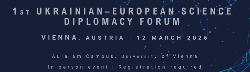 Сьогодні, 12 березня 2026 року, у Віденському університеті (Aula am Campus, Spitalgasse 2, 1090 Vienna) відбудеться 1-й Ukrainian–European Science Diplomacy Forum, організований Ukrainian Science Diaspora in Austria (USciDA) у партнерстві з європейськими та українськими інституціями.