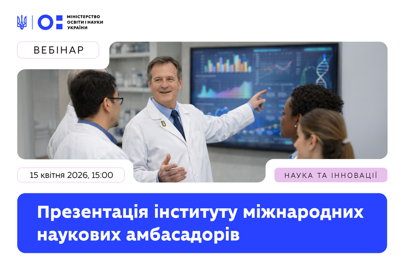 Міністерство освіти і науки України разом з ініціативою «Українська наукова діаспора» запрошує представників закладів вищої освіти взяти участь у презентації інституту міжнародних наукових амбасадорів, започаткованого для розвитку співпраці з українською науковою діаспорою та розширення міжнародних зв’язків української науки.