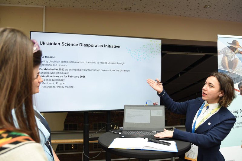 Євгенія Поліщук, співзасновниця ініціативи Української наукової діаспори представила звіт з дослідження «Вплив Української наукової діаспори на відновлення України». Презентація відбулася 23 лютого 2026 року під час заходу Café Kyiv у Берліні. Захід був присвячений 4-й річниці повнтомасштабного вторгнення рф в Україну. Він зібрав під своїм дахом політиків, громадських діячів, вчених і небайдужих друзів з Німеччини. Вони мали змогу поділитися своїм досвідом того, як вони підтримують Україну.